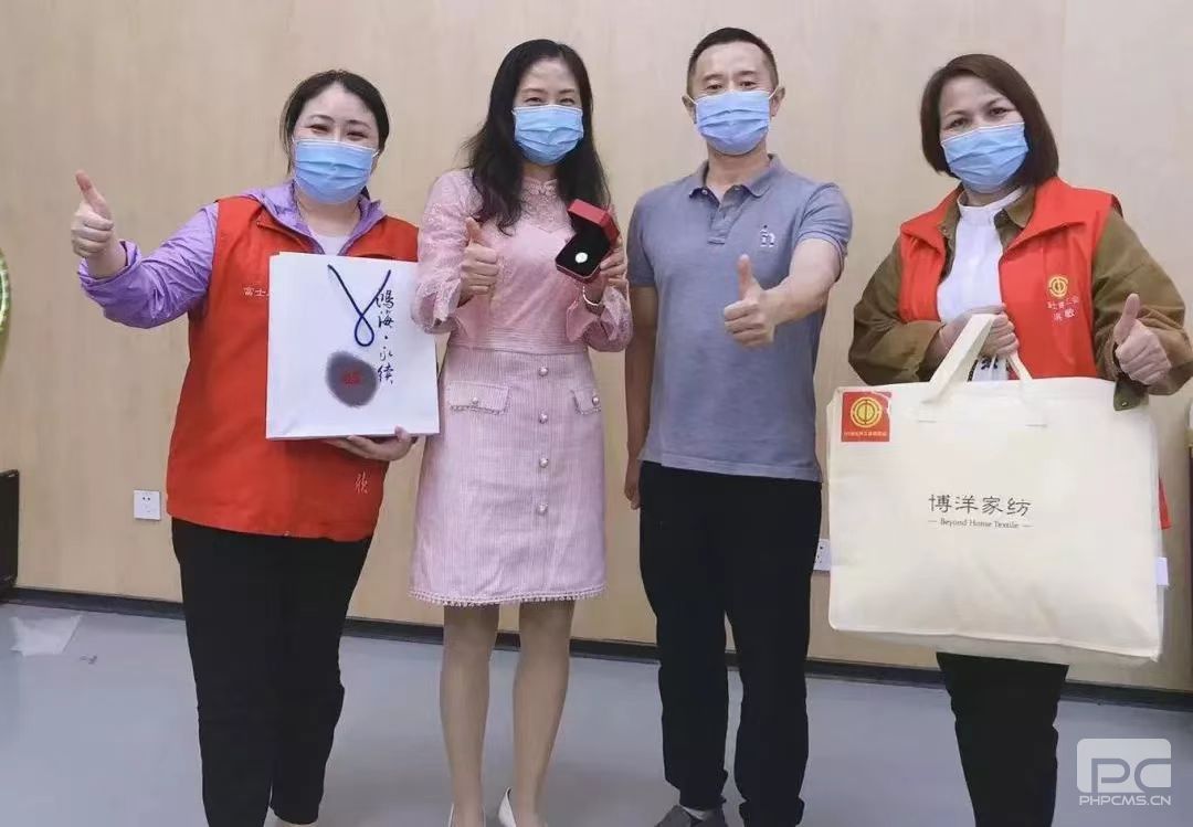 FlT事業群工會副主席姚敏、龍華富士康周邊事業處工會主席程君等,一同前往徐義梅辦公地點進行慰問,并為她送上富士康集團工會準備的紀念金幣、紀念郵冊及關愛禮品。