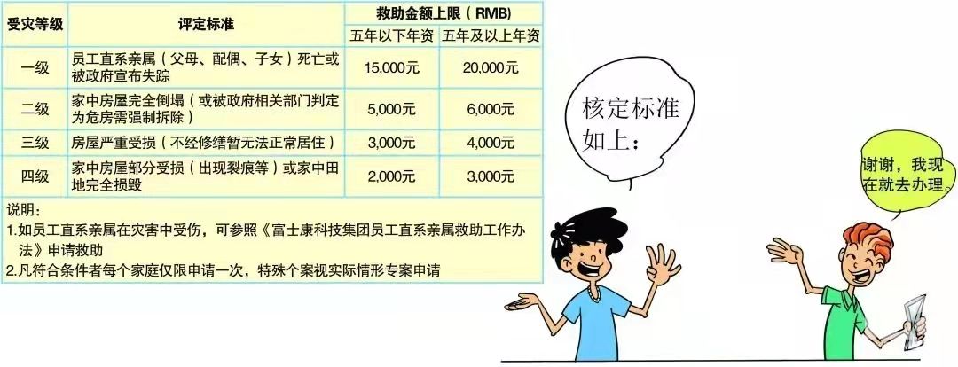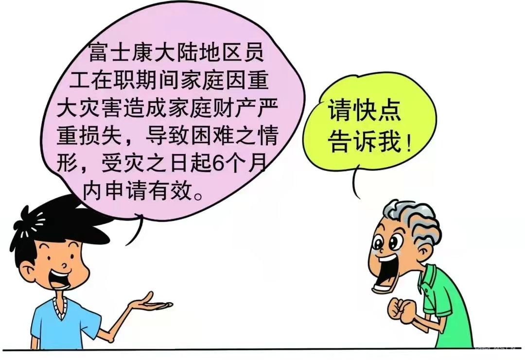 我們一塊來看一則案例小邱自2015年3月6日入職,已在富士康集團工作7年。2021年7月小邱老家房屋因連續暴雨,導致房屋地基下沉,農田顆粒無收。在對小邱的情況進行核實后,工會按照相關政策給予他救助金6,000元。