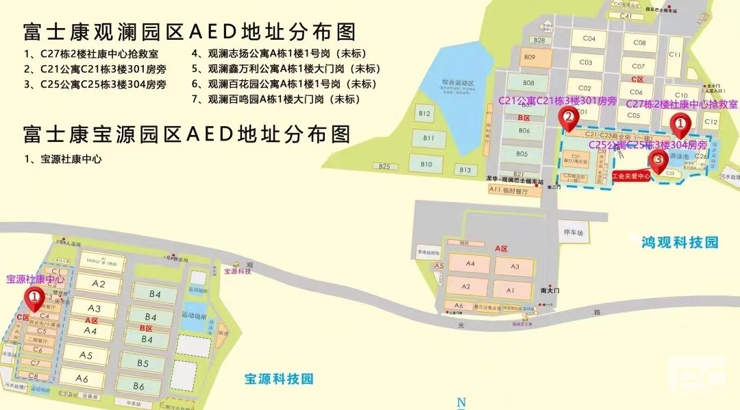 一定懂得如何操作,那小伙伴們知道,富士康深圳龍華園區-觀瀾園區的AED在哪嗎?